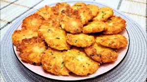 Form small balls. Use a jar to make a nice shape. Roll in flour. Fry in oil until golden brown. Fry on medium heat for 3-4 minutes on each side. Place on a paper towel.
